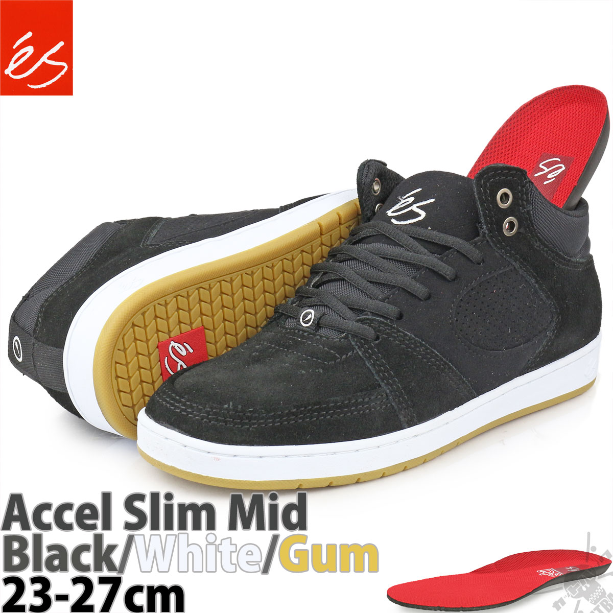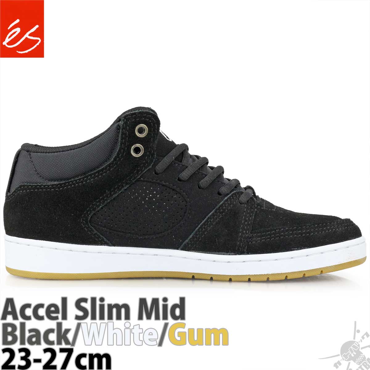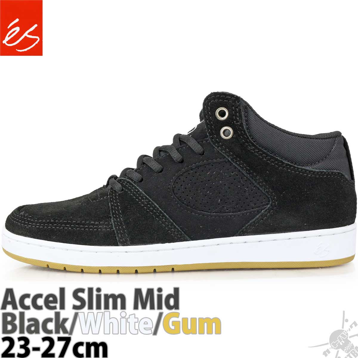 スケボー シューズ 23-27cm エス アクセル スリム ミッド ブラック/ホワイト/ガム es Accel Slim Mid Black/White/Gum スケートボード ブランド スエード メンズ US サイズ スニーカー スケシュー スケートシューズ 靴 黒