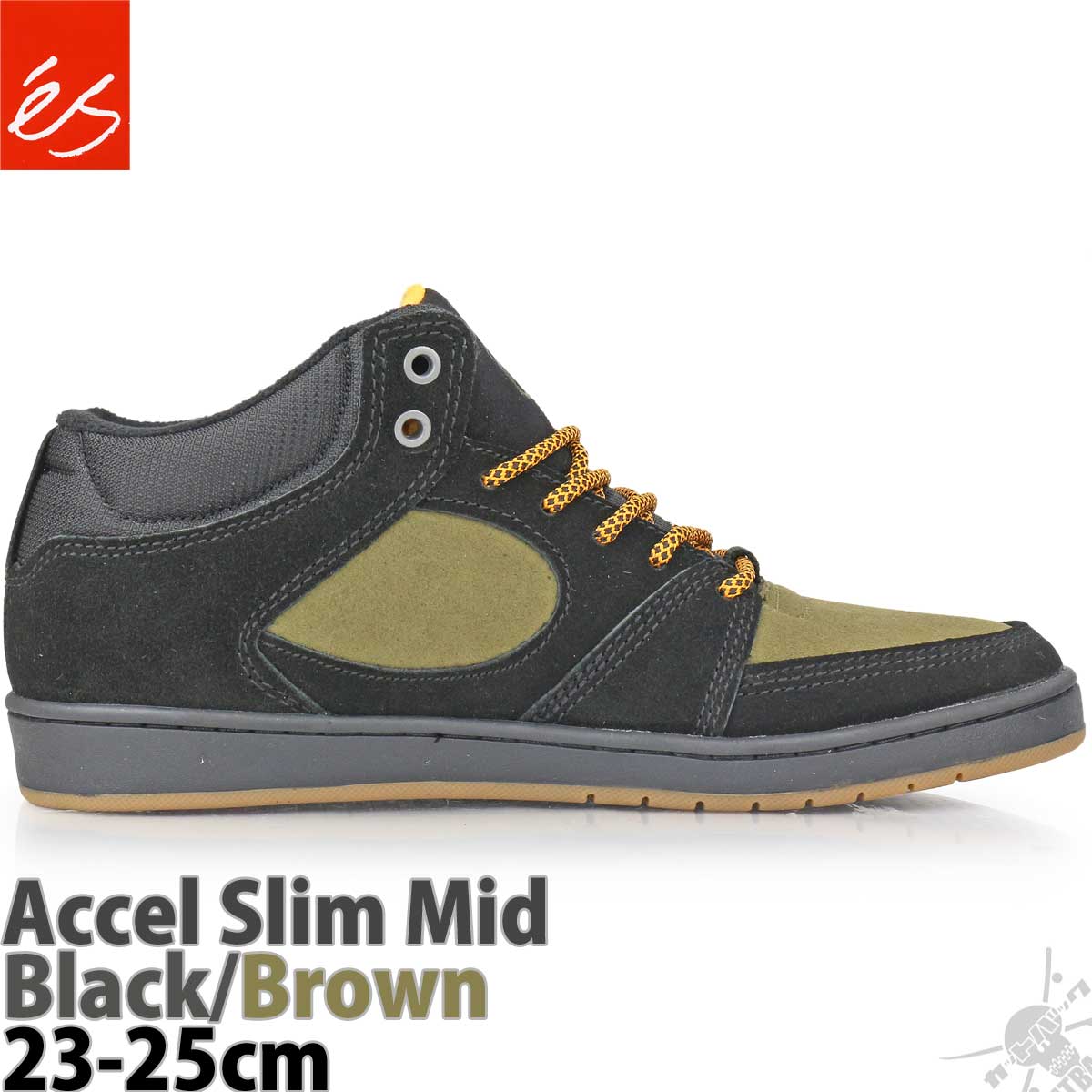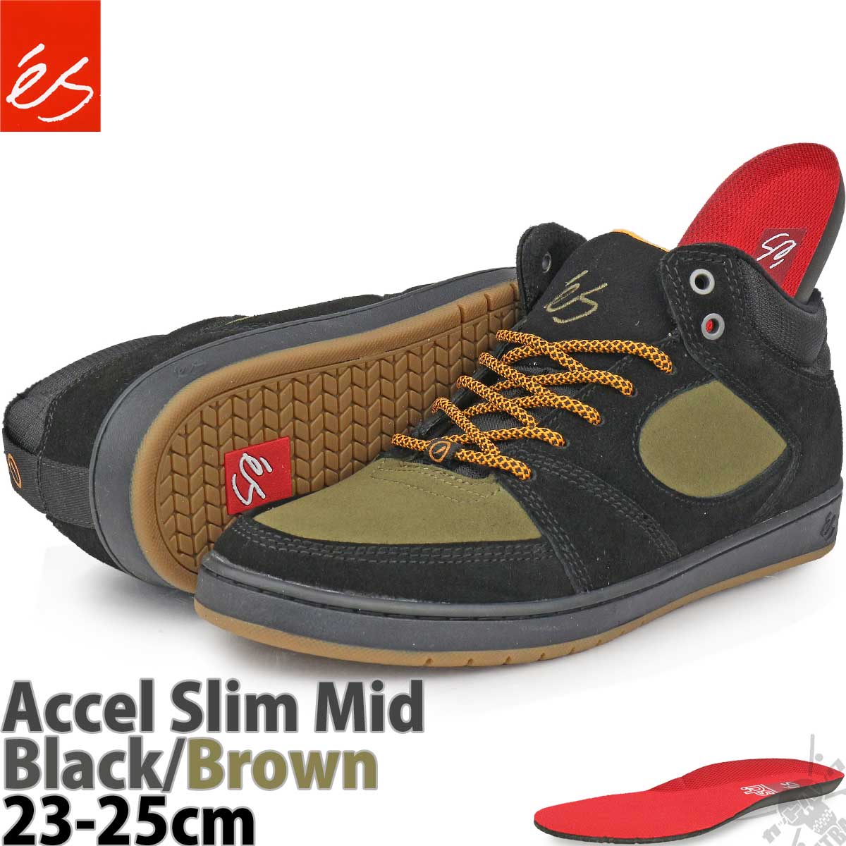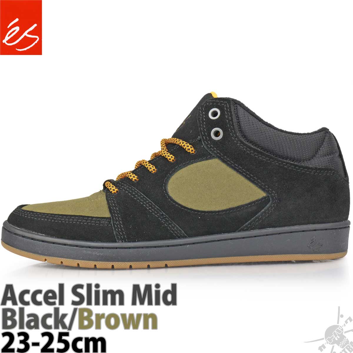 スケボー シューズ 23-25cm エス アクセル スリム ミッド ブラック/ブラウン es Accel Slim Mid Black/Brown スケートボード ブランド スエード メンズ US サイズ スニーカー スケシュー スケートシューズ 靴 黒