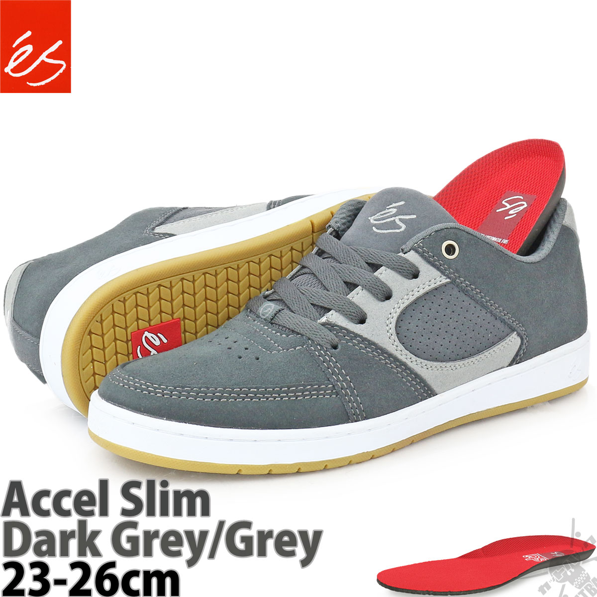 スケボー シューズ 23-26cm エス アクセル スリム ダークグレー es Accel Slim Dark Grey/Grey スケートボード ブランド スエード メンズ ローカット US サイズ スニーカー スケシュー スケートシューズ 靴 チャコール 灰色
