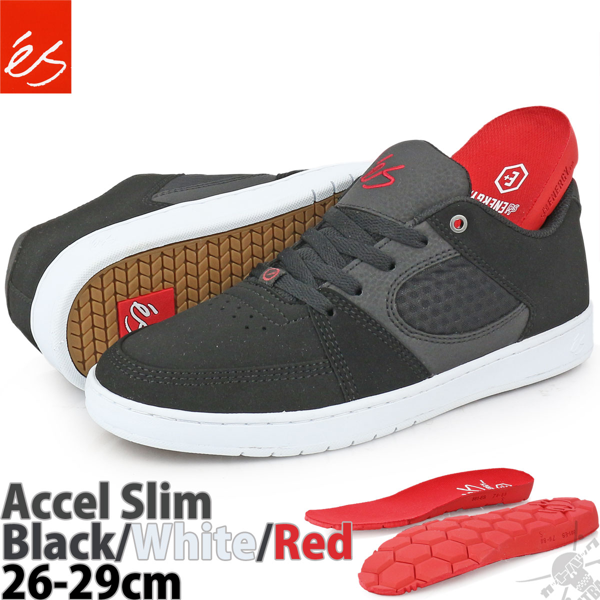スケボー シューズ 26-29cm エス アクセル スリム ブラック/ホワイト/レッド es Accel Slim Black/White/Red スケートボード ブランド スエード メンズ ローカット US サイズ スニーカー スケシュー スケートシューズ 靴 黒