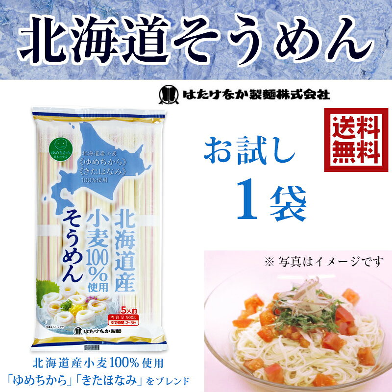 (日付時間帯指定不可)(沖縄・離島は配送不可) 製造元 はたけなか製麺株式会社〒989-0276宮城県白石市大手町4-11【宮城 はたけなか製麺】【お試し】 常温 北海道そうめん 500g×1袋 約5人前 東北お取り寄せグルメ 北海道産小麦100%使用 きたほなみ ゆめちから 国内製麺 乾麺 素麺 そうめん にゅうめん 冷温OK ネコポス 送料無料 驚くほどモチモチした食感の喉越しの良いそうめんです 【北海道優良品種となった、もっちり食感が楽しめる「ゆめちから」小麦粉使用】 厳選した北海道産小麦100%使用。