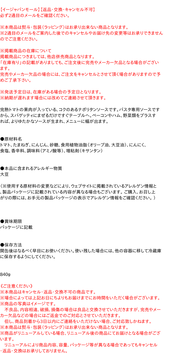 カゴメ ナポリタンソース 840g ×12個 はコチラ >>【イージャパンショッピングモール】内のみのお買い物は、送料一律でどれだけ買っても同梱する事が出来ます。