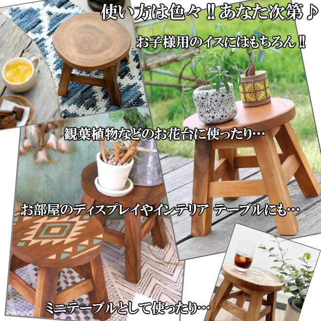色々使えて大人気!ウッド・ラウンドスツール(3タイプ) 〜お勧めポイント〜 色々使える大人気のウッドスツール! とてもしっかりとした作りで、丈夫です。